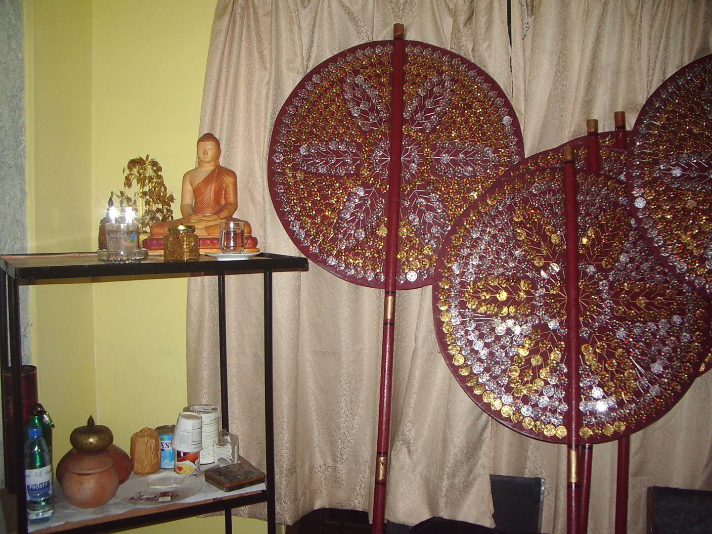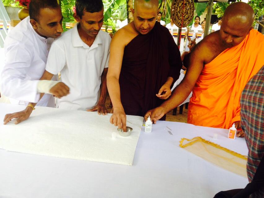 So we did another rare offering. We spend time on creating 1 lakh of tiny sesath. Just like we take time on collecting wealth for us… collecting possessions for us… we took time to create such tiny sesath… one lakh of them… We used tooth picks as the handle and one printed design as the main plate and decorate it 9 pearls to represent the 9 great qualities of Samma Sambuddha.