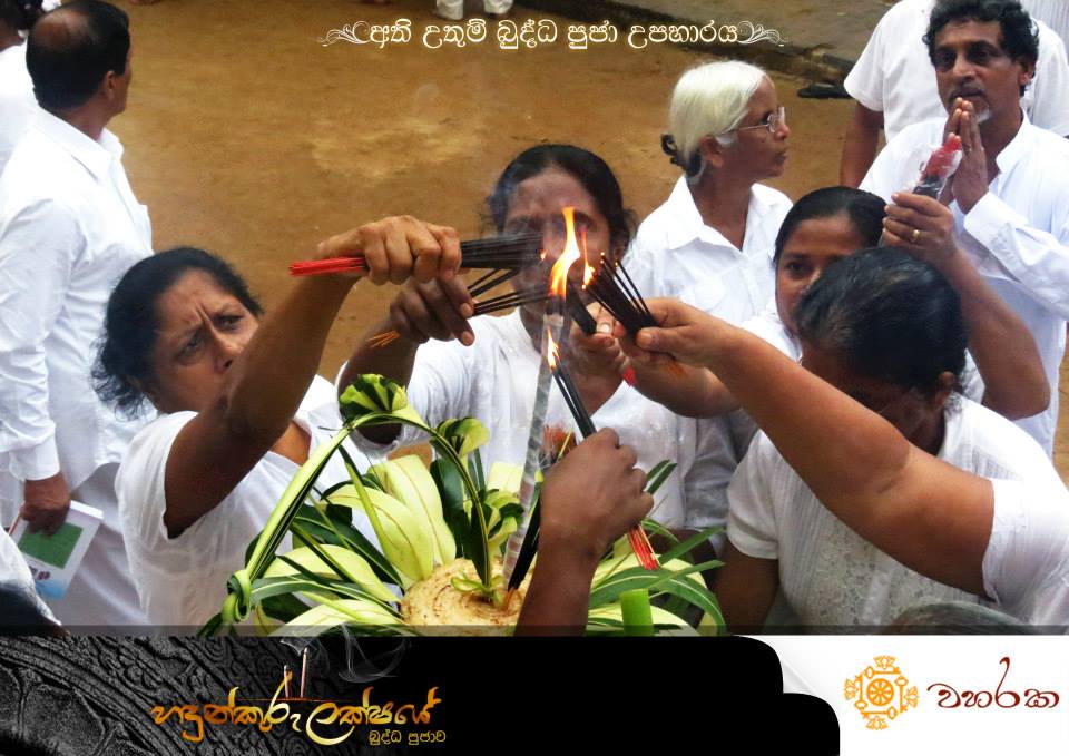Incense Stick Offering 28 February 2014 Waharaka Himi Rare Rice Offering The Longest Canopy Sesath Offering Lakhs of Pagodas One Lakh of Flags