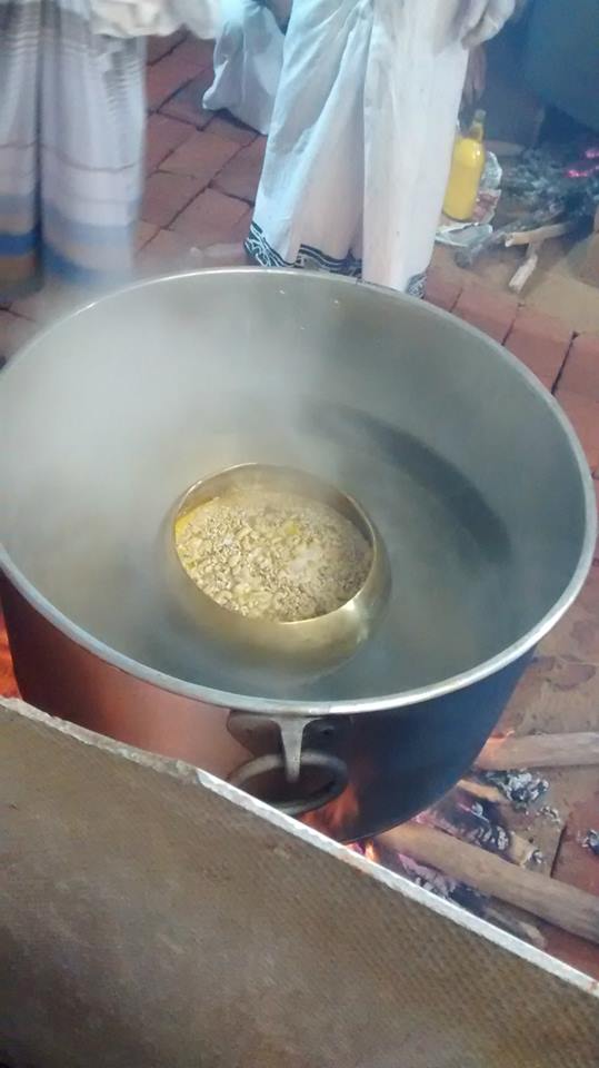 We selected the best seeds with no damages and count 512,028 seeds. We cooked them in a special way and we imagine that each seed represent a bowl of food for a Samma Sambuddha (Lord Buddha). So the 512,028 seeds means that we offer that number of Samma Sambuddhas on this offering.