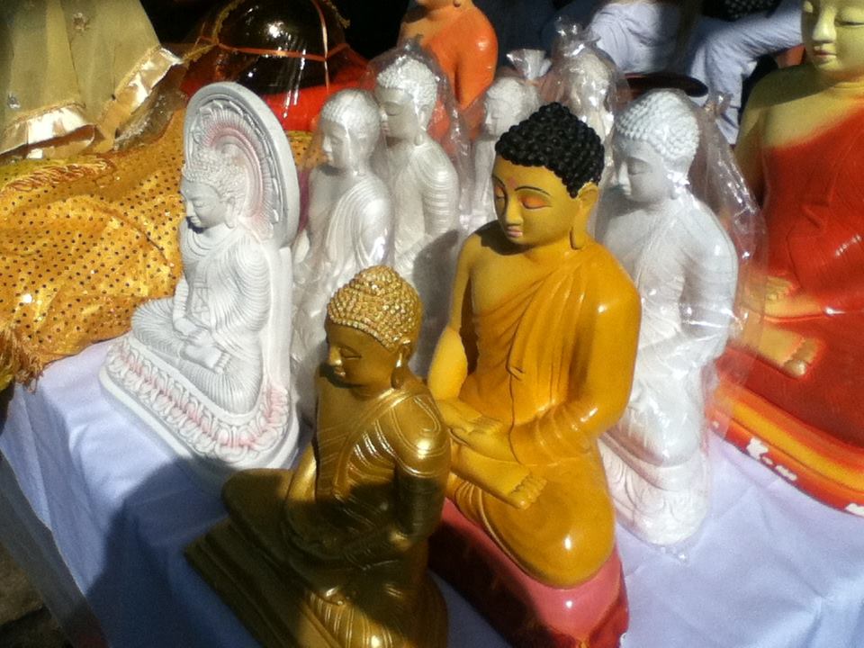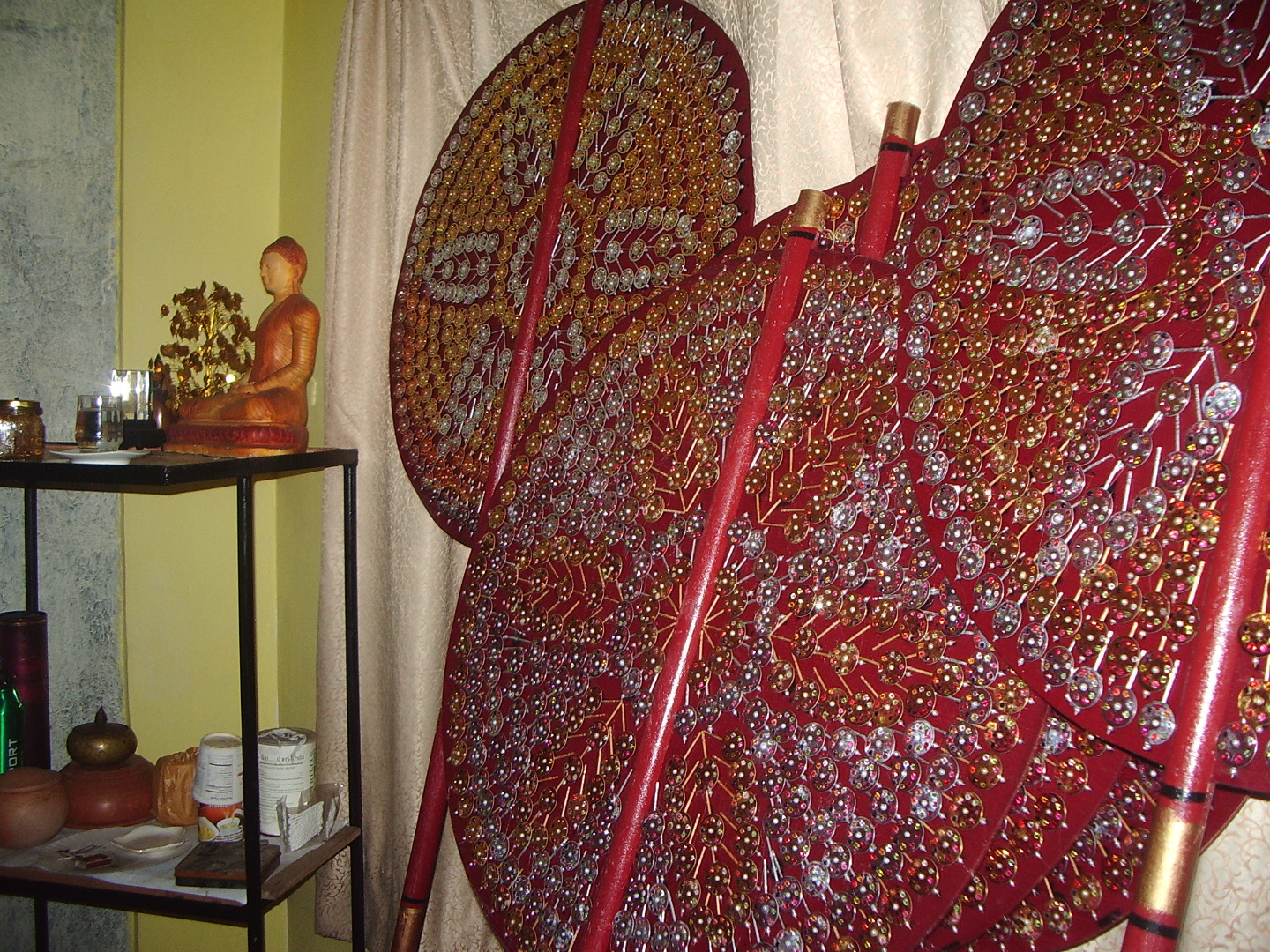 So we did another rare offering. We spend time on creating 1 lakh of tiny sesath. Just like we take time on collecting wealth for us… collecting possessions for us… we took time to create such tiny sesath… one lakh of them… We used tooth picks as the handle and one printed design as the main plate and decorate it 9 pearls to represent the 9 great qualities of Samma Sambuddha.