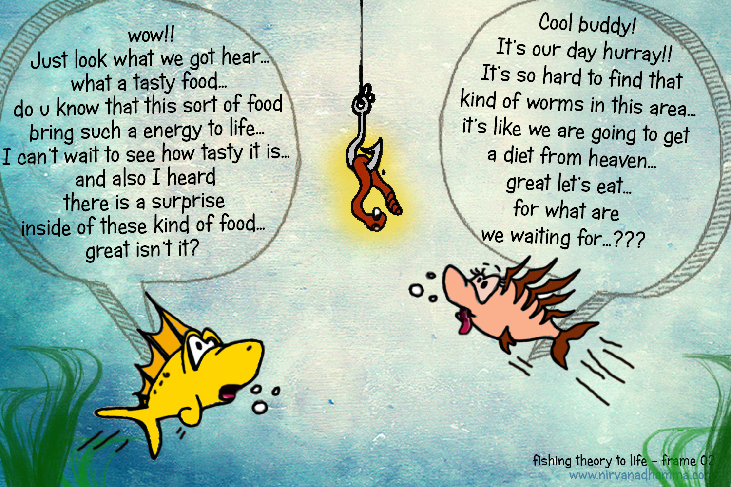 The fish eats the worm not the hook. But unfortunately there is no worm without a hook… so fish has to face loads of pain & danger with the pleasure he seeks.